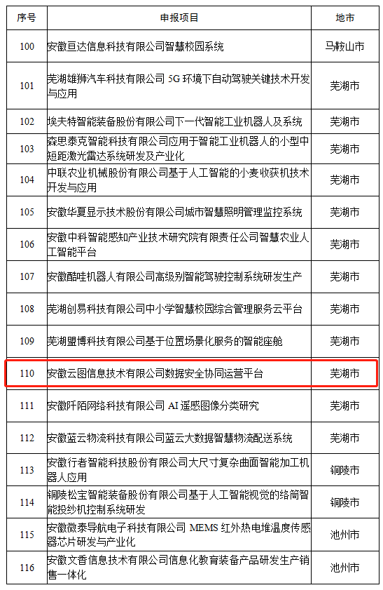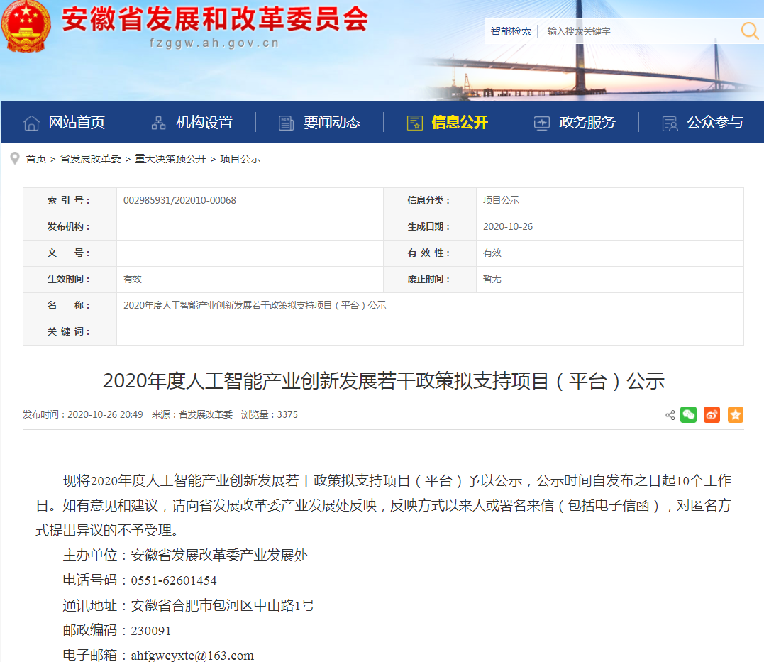 近日,安徽省发展和改革委员会公示了2020年度人工智能产业创新发展若干政策拟支持项目(平台)。万向娱乐信息申报的数据安全协同运营平台项目获得该项政策支持,并且顺利通过评选,进入公示阶段!