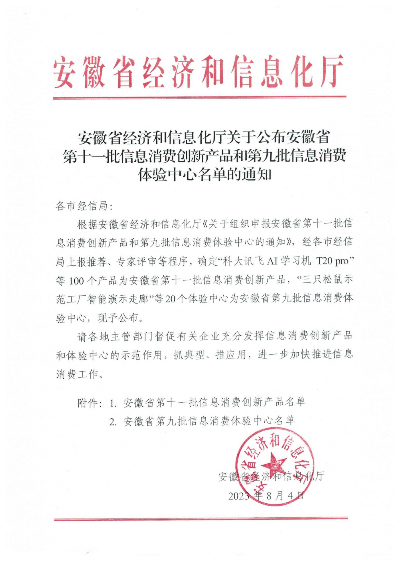 ? ? ? 8月4日,安徽省经济和信息化厅发布了“安徽省第十一批信息消费创新产品和第九批信息消费体验中心”名单,安徽万向娱乐信息技术有限公司的数据安全治理协同平台成功入选《安徽省第十一批信息消费创新产品》。